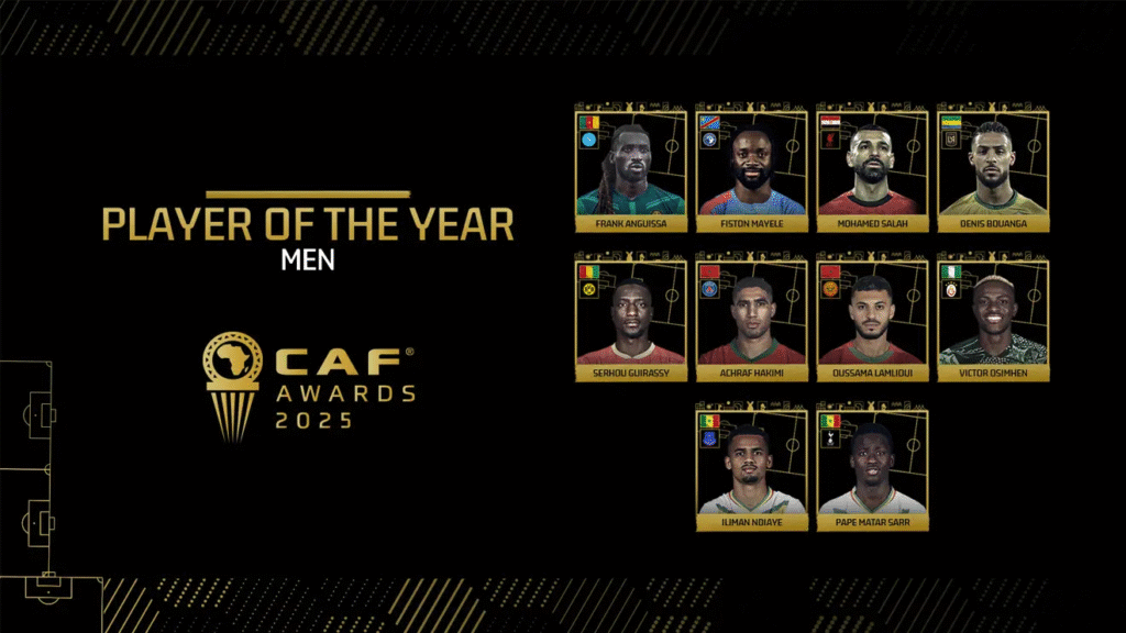 (APA) La Confédération africaine de football (CAF) a publié lundi la liste des nommés dans les catégories masculines des CAF Awards 2025, qui récompensent les meilleurs joueurs, entraîneurs, clubs et équipes nationales du continent pour la période du 6 janvier au 15 octobre 2025.